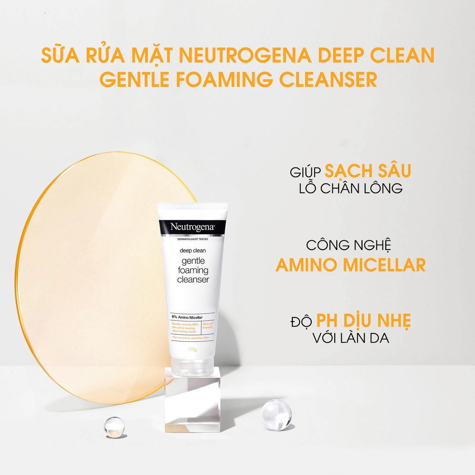 Neutrogena Deep Clean Foaming Cleanser có khả năng tạo bọt mịn dày đặc, giúp làm sạch da, loại bỏ 99% chất bẩn thông thường và bụi mịn, giữ lại cho da độ ẩm và cân bằng độ pH trên da. Thêm vào đó, sản phẩm còn có khả năng kiềm dầu, kiểm soát lượng dầu thừa và bã nhờn trên da, cho da luôn khô thoáng, không làm bít tắc lỗ chân lông. Sữa rửa mặt Neutrogena sử dụng công thức làm sạch với những thành phần được chọn lọc cẩn thận và trải qua các bài thử nghiệm từ các bác sĩ, chuyên gia da liễu, nên rất an toàn cho da, không gây kích ứng, không gây mụn. Sản phẩm phù hợp sử dụng trên mọi làn da, từ da thường đến da dầu.