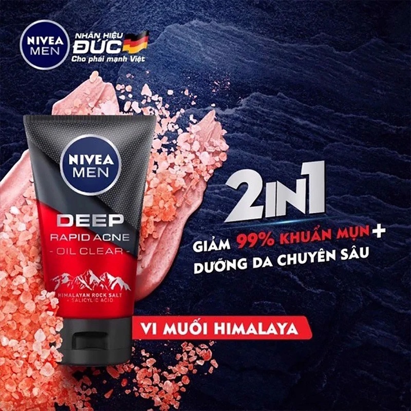 Sữa rửa mặt Nivea men than đen Himalaya 100g là dòng sản phẩm sữa rửa mặt dành cho nam đến từ thương hiệu mỹ phẩm chăm sóc da nổi tiếng của Đức Nivea. Sản phẩm có thành phần chính chứa muối hồng Himalaya và Salicylic Acid.
