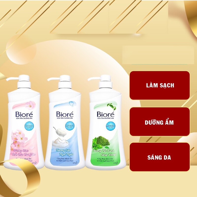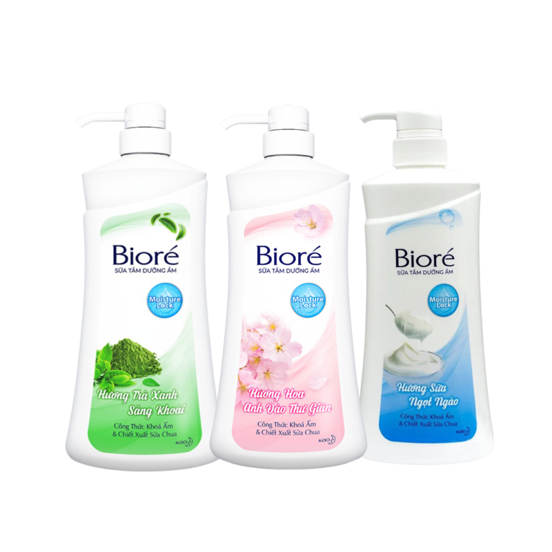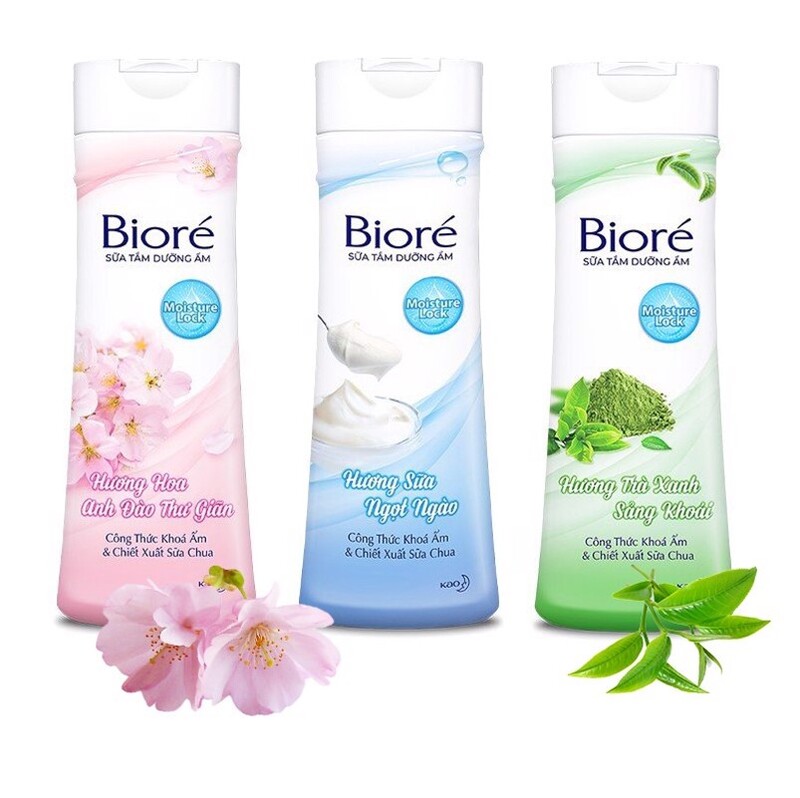 - Sữa Tắm Dưỡng Ẩm Bioré Hương Hoa Anh Đào Thư Giãn: Thành phần có chiết xuất chính từ hoa Anh Đào có khả năng chống oxy hoá tốt, dưỡng ẩm và cải thiện các vấn đề về da như khô sạm, lão hoá sớm, làm đều màu da chỉ sau thời gian ngắn sử dụng. Hương thơm hoa Anh Đào quyến rũ và ngọt ngào mang đến cảm giác vô cùng thư thái, dễ chịu mỗi khi tắm cùng khả năng lưu hương từ 1-2 giờ.