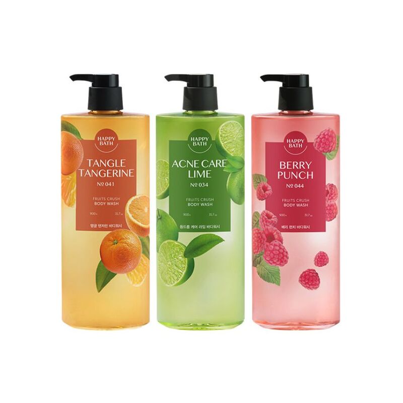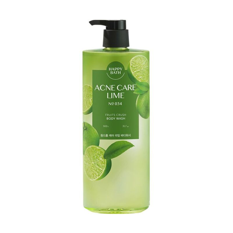 Sữa Tắm Happy Bath Acne Care Lime 900g - Chanh: Được phát triển đặc biệt cho làn da mụn, sữa tắm này chứa chiết xuất chanh giúp giảm mụn và làm sạch sâu. Axit tự nhiên từ chanh cũng giúp cân bằng độ pH của da, mang lại làn da sáng khỏe.