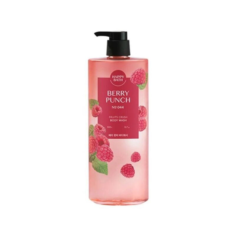Sữa Tắm Happy Bath Berry Punch 900g - Berry: Kết hợp các chiết xuất từ trái mâm xôi và việt quất, có tính chống oxy hóa mạnh mẽ và làm sạch sâu. Hương thơm ngọt ngào của trái cây còn giúp thư giãn và làm mới tinh thần.