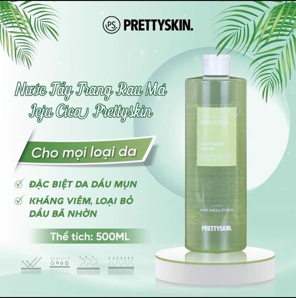 Nước Tẩy Trang Rau Má PrettySkin The Pure Jeju Cica Cleansing Water được đánh giá là dòng sản phẩm làm sạch vô cùng an toàn, lành tính, thân thiện với cả làn da nhạy cảm. Chiết xuất rau má, tràm trà có khả năng làm dịu da, kháng khuẩn hiệu quả, đồng thời cung cấp độ ẩm thích hợp cho da mềm mại, mịn màng.