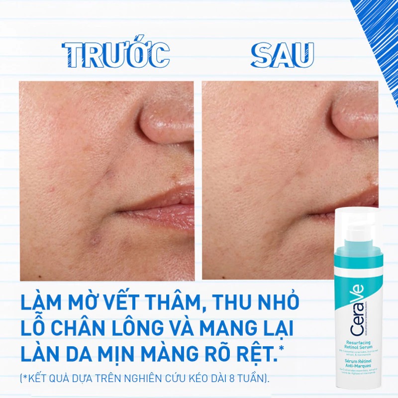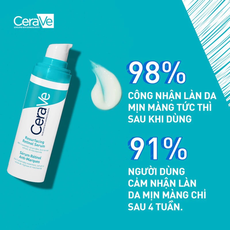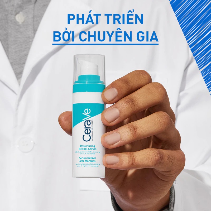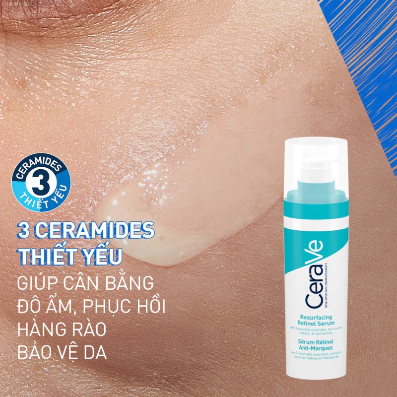 Tinh Chất CeraVe Resurfacing Retinol Serum 30ml là sản phẩm nổi bật đến từ thương hiệu CeraVe (Mỹ) - nhãn hàng dược mỹ phẩm được các bác sĩ da liễu khuyên dùng. Với công thức chứa Retinol dạng bọc (Encapsulated Retinol) kết hợp Niacinamide và Ceramide, sản phẩm giúp cải thiện kết cấu da, làm mờ thâm mụn, giảm sần và hỗ trợ phục hồi hàng rào bảo vệ tự nhiên của da.