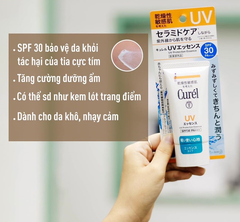 Sở hữu thành phần chống nắng Titanium Dioxide nổi tiếng, tinh chất chống nắng nhà Curel đem lại hiệu quả vượt trội trong việc bảo vệ làn da khô mỏng manh tránh khỏi tình trạng kích ứng, cháy nắng, mẩn đỏ do tác hại từ ánh nắng mặt trời, đồng thời làm dịu da, hỗ trợ kháng viêm, giảm sưng hiệu quả, hạn chế sự tích tụ và hình thành vi khuẩn gây mụn. Sản phẩm này thích hợp cho mọi loại da, đặc biệt là da khô và nhạy cảm.