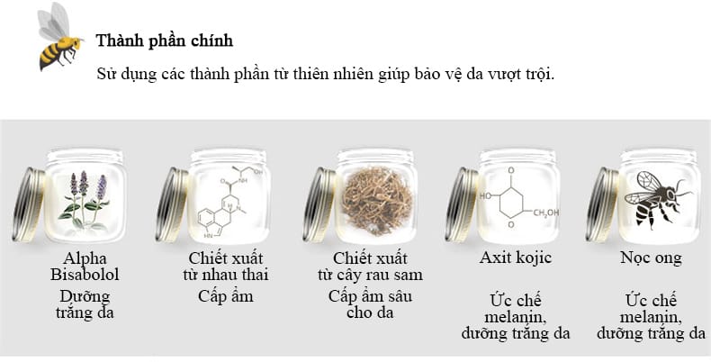 Sản phẩm sử dụng công thức đặc biệt giúp hỗ trợ loại bỏ mọi hiện tượng nám, sạm da, vết thâm, đồi mồi, tàn nhang. Đồng thời giúp dưỡng da trắng sáng, trắng hồng, đều màu da. Bên cạnh đó, Tinh Chất Dưỡng Trắng Trị Nám Dongsung còn giúp ngăn chặn sự lão hóa trên da.