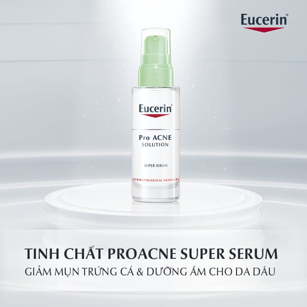 Tinh Chất Eucerin Pro Acne Solution Super Serum Giảm Mụn Trứng Cá Mờ Sẹo 30ml là một trong những sản phẩm nổi bật của thương hiệu Eucerin, được đông đảo khách hàng tin dùng, Với thành phần chính là Lactic Acid và Decandiol giúp tiêu diệt vi khuẩn, ngăn sự hình thành của mụn, điều trị tình trạng mụn cũng như cải thiện bề mặt da, điều tiết lượng bã nhờn hiệu quả trong thời gian ngắn.