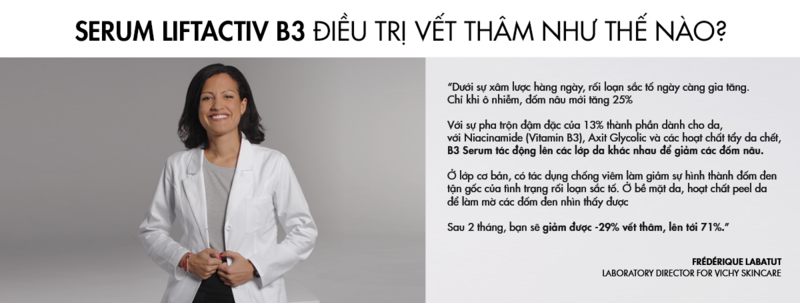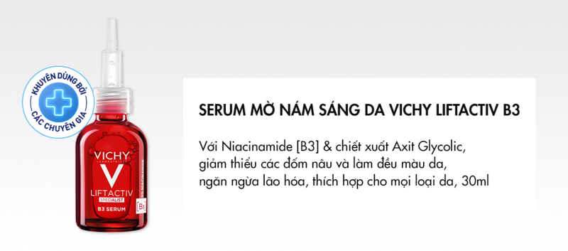Tinh Chất Vichy Làm Mờ Vết Thâm Và Nếp Nhăn Liftactiv B3 Dark Spots 30ml là một trong những dòng serum mang lại hiệu quả làm mờ thâm cũng như ngăn ngừa dấu hiệu lão hóa của hãng được đông đảo người tiêu dùng lựa chọn. Với 13% phức hợp từ thành phần hoạt tính có nồng độ cao như vitamin B3, Glycolic Acid, Peeling Actives tác động sâu vào bên trong da và ngăn ngừa dấu hiệu của sự hình thành đốm nâu, thâm nám đen sạm mang lại cho bạn làn da đều màu, sáng hồng.