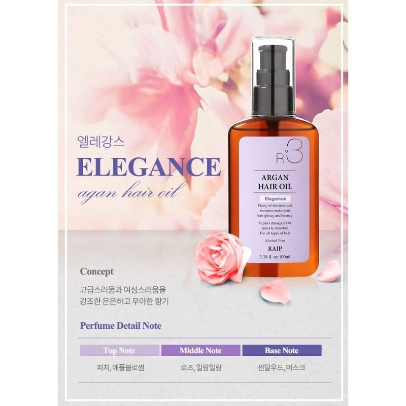 Raip là một thương hiệu mỹ phẩm đến từ Hàn Quốc sở hữu hàng loạt các sản phẩm làm đẹp, chăm sóc da, chăm sóc da, trị mụn… được nhiều người ưa chuộng. Trong đó, tại Việt Nam, người dùng biết đến thương hiệu này thông qua dòng dưỡng tóc tinh dầu Argan Oil R3 dành cho mọi loại tóc giúp dưỡng tóc và phục hồi hư tổn. Sản phẩm gồm 5 phân loại, về thành phần khá giống nhau, chỉ khác nhau về mùi hương. Từ mùi hương ngọt ngào, nữ tính, thanh dịu đến hương thơm sexy, quyến rũ, giúp nàng dễ dàng chọn được hương thơm theo sở thích của mình.