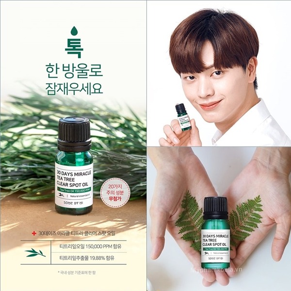 Tinh Dầu Tràm Trà Some By Mi 30 Days Miracle Clear Spot Oil được ví như một loại trị mụn có công dụng “thần kỳ” đánh bay mọi loại mụn chỉ trong thời gian ngắn, trả lại cho bạn làn da sạch mụn, tươi tắn. Đây là loại tinh dầu thuộc dòng AHA-BHA-PHA với thành phần chính là tinh dầu tràm trà giúp kháng viêm, kháng khuẩn, tiêu diệt nhân mụn và đồng thời dưỡng ẩm cho da luôn mịn màng.