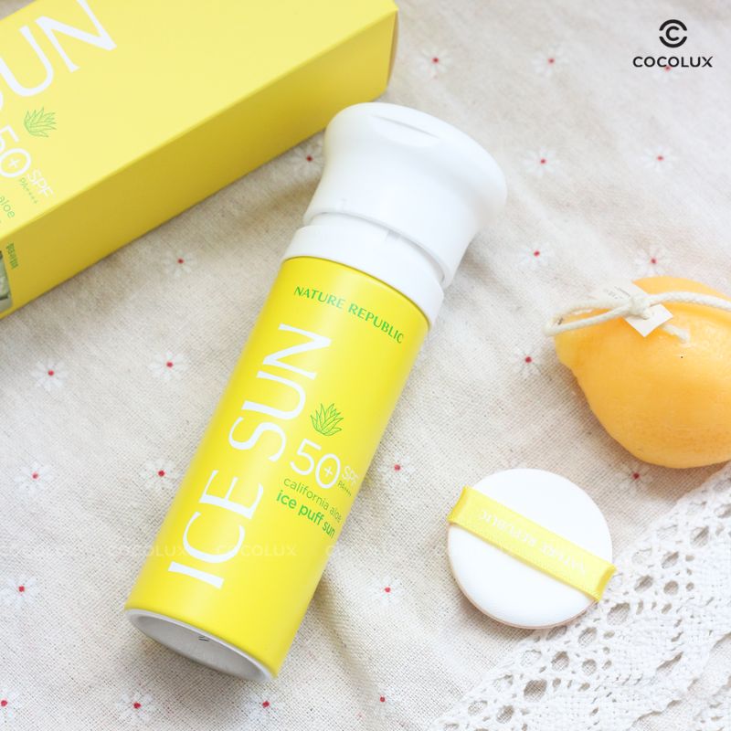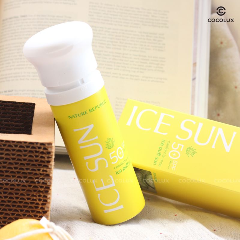 Xịt chống nắng Nature Republic Ice Sun California Aloe Clear Ice Puff Sun SPF50 PA++++ là sản phẩm kem chống nắng thế hệ mới đến từ thương hiệu Nature Republic, Hàn Quốc. Kem chống nắng Ice Sun đã được cải tiến vượt trội so với phiên bản trước đó, Ice Puff Sun. Sản phẩm vẫn giữ được chức năng 3 trong 1: chống nắng, làm mát và trang điểm.