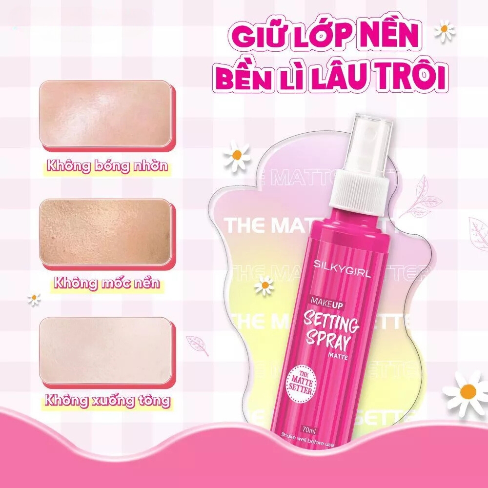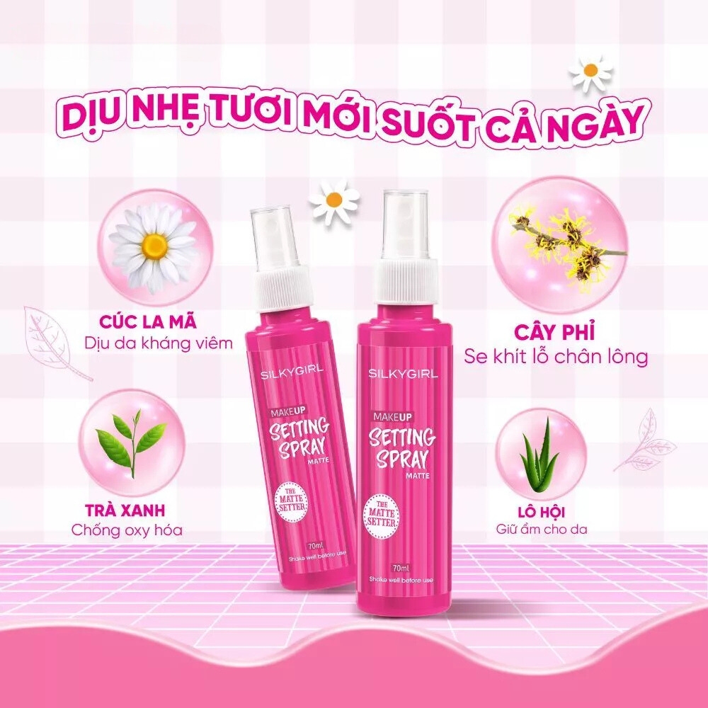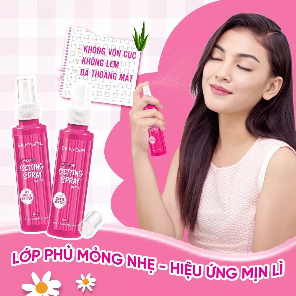 Xịt giữ lớp trang điểm lâu trôi Silkygirl Makeup Setting Spray - Matte 70ml là sản phẩm nổi bật đến từ thương hiệu Silkygirl của Malaysia. Được thiết kế đặc biệt để giúp cố định lớp trang điểm, sản phẩm này không chỉ giúp lớp nền trở nên bền lâu mà còn cung cấp độ ẩm cần thiết cho da, mang lại vẻ đẹp hoàn hảo trong suốt cả ngày. Với kết cấu nhẹ nhàng và khả năng kiểm soát dầu nhờn hiệu quả, xịt khoáng Silkygirl là một trong những lựa chọn hàng đầu cho những ai yêu thích trang điểm và muốn lớp trang điểm giữ được vẻ tự nhiên, tươi tắn.
