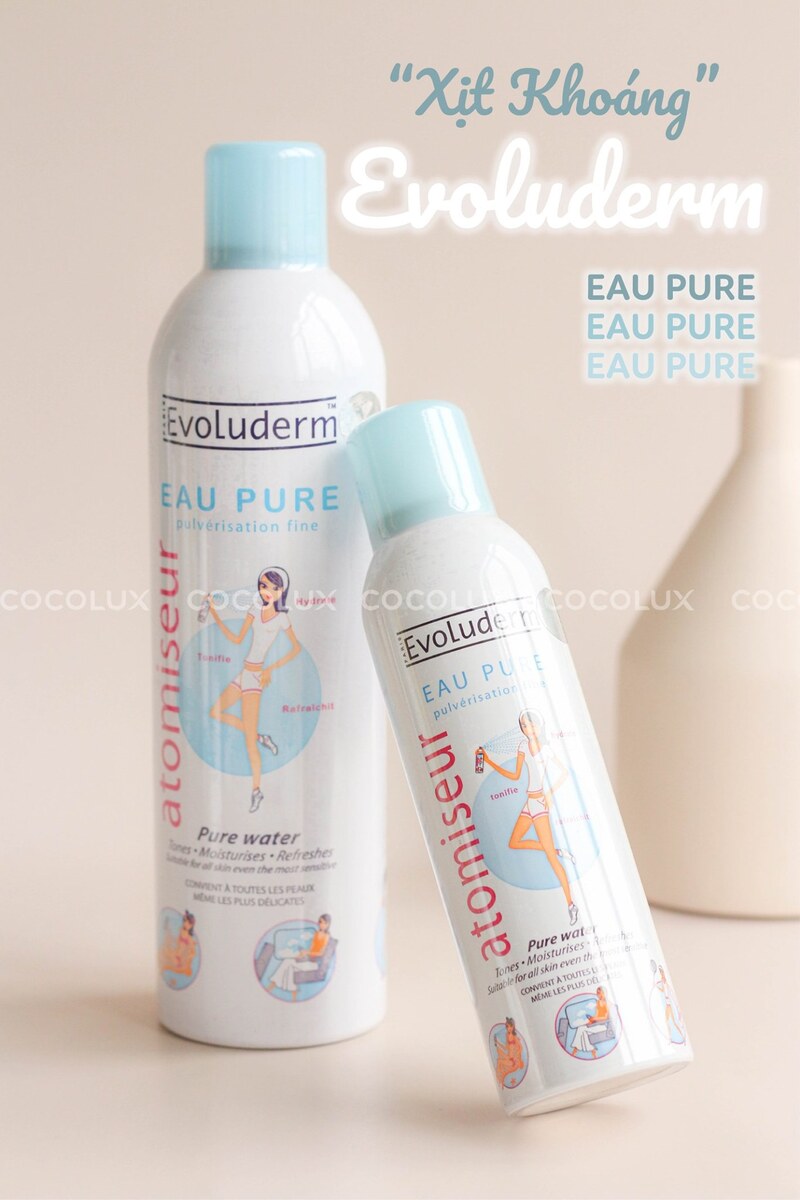 Hiện tại, Cocolux đang có sẵn dòng sản phẩm Xịt Khoáng Evoluderm Pháp với hai dung tích: 150ml và 400ml.