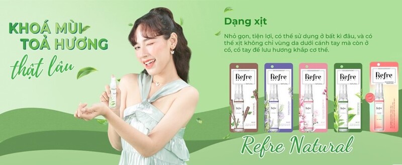 Xịt Khử Mùi Refre Hương Trà Xanh 30ml: Hương Trà Xanh thuần khiết cùng các thành phần tự nhiên giúp khử mùi vùng da dưới cánh tay hiệu quả, mang lại cảm giác thư giãn, sáng khoải và tự tin suốt ngày dài.