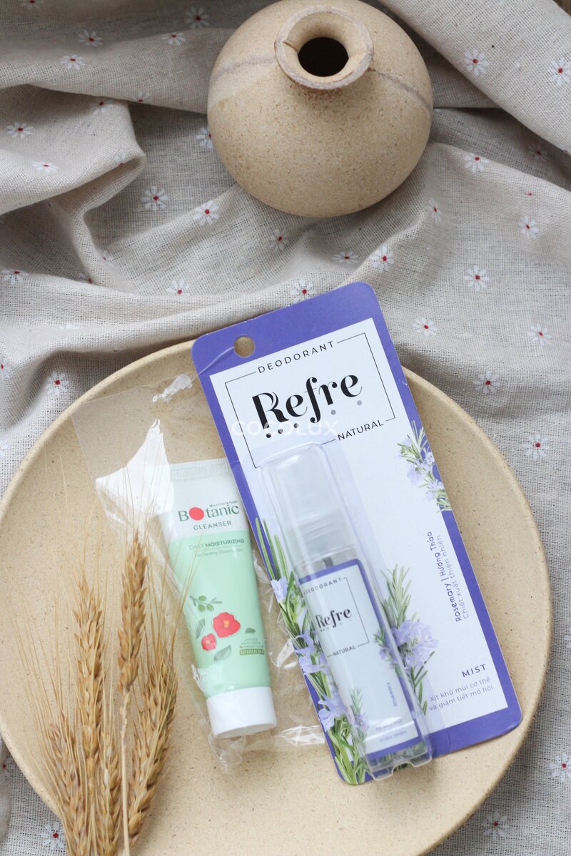 Xịt Khử Mùi Refre Hương Thảo 30ml: Hương Thảo thanh dịu giúp khử mùi vùng da dưới cánh tay, đồng thời giảm căng thẳng và giữ cho tinh thần thoải mái suốt ngày dài. Chiết xuất từ cây Hương Thảo cũng hỗ trợ làm dịu da, giảm kích ứng và ngăn ngừa các bệnh liên quan đến da như vẩy nến, mẩn ngứa, viêm da dị ứng…