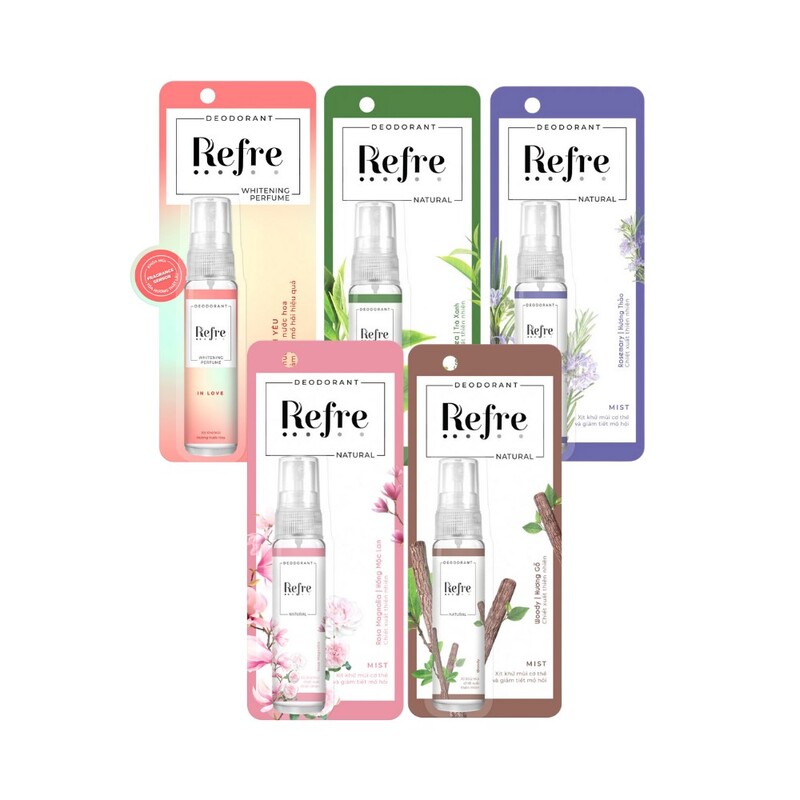 Hiện tại, Xịt Khử Mùi Refre Hương Nước Hoa 30ml đã có mặt tại Cocolux với 5 phân loại: